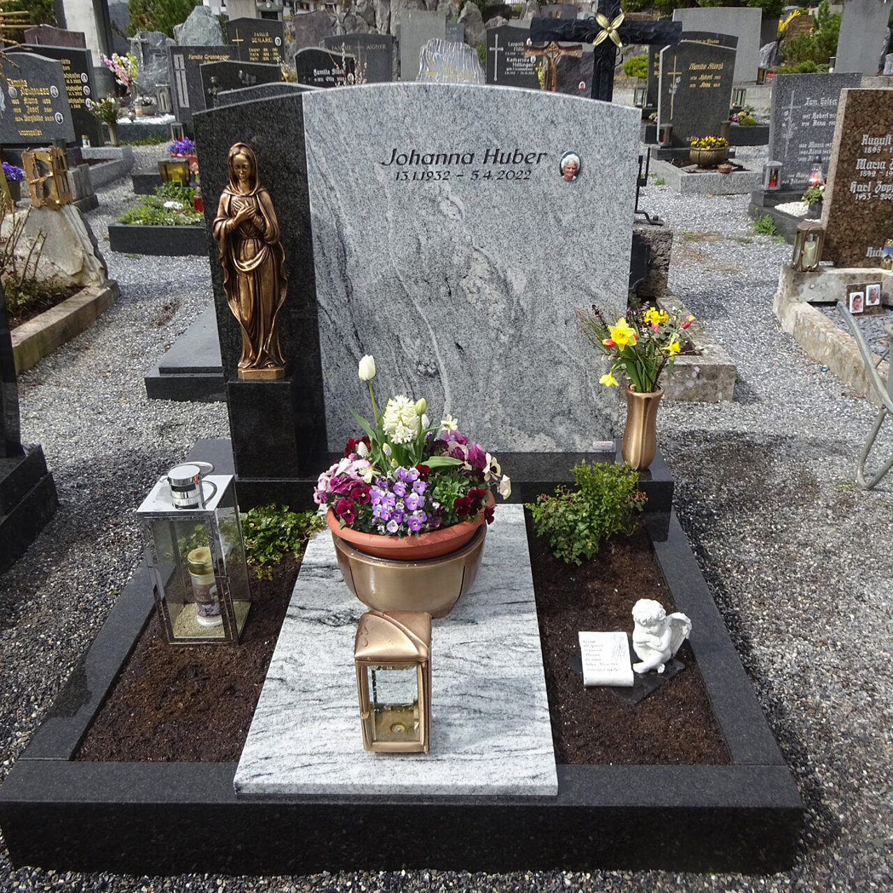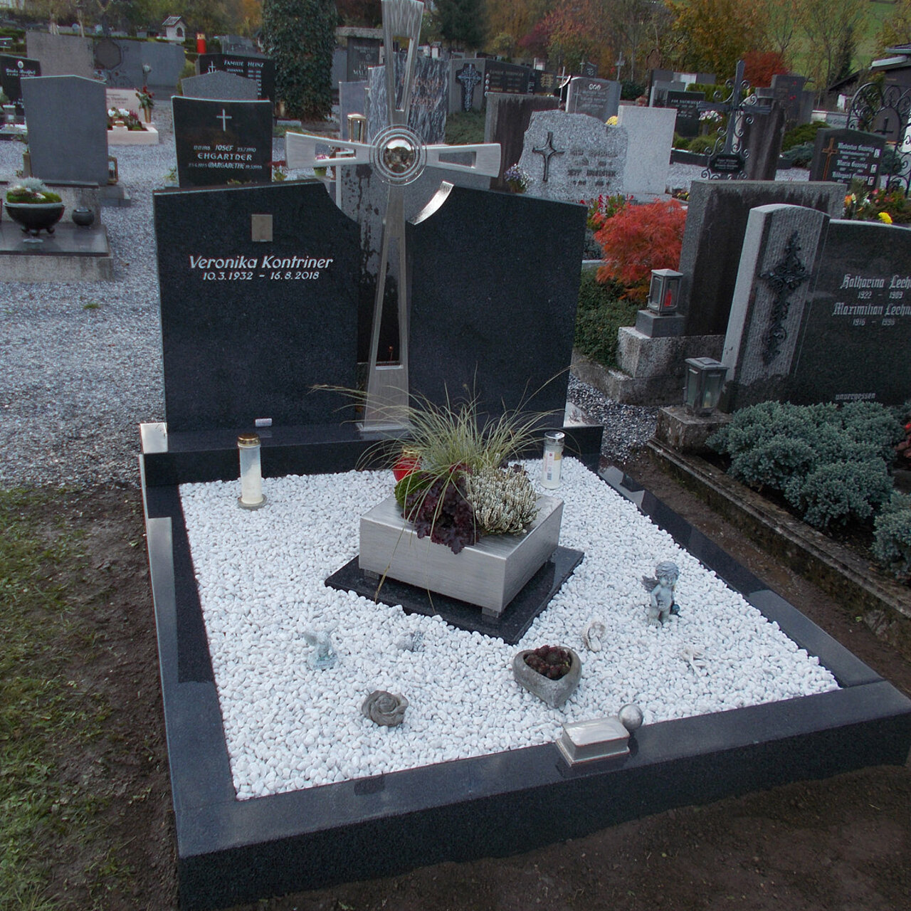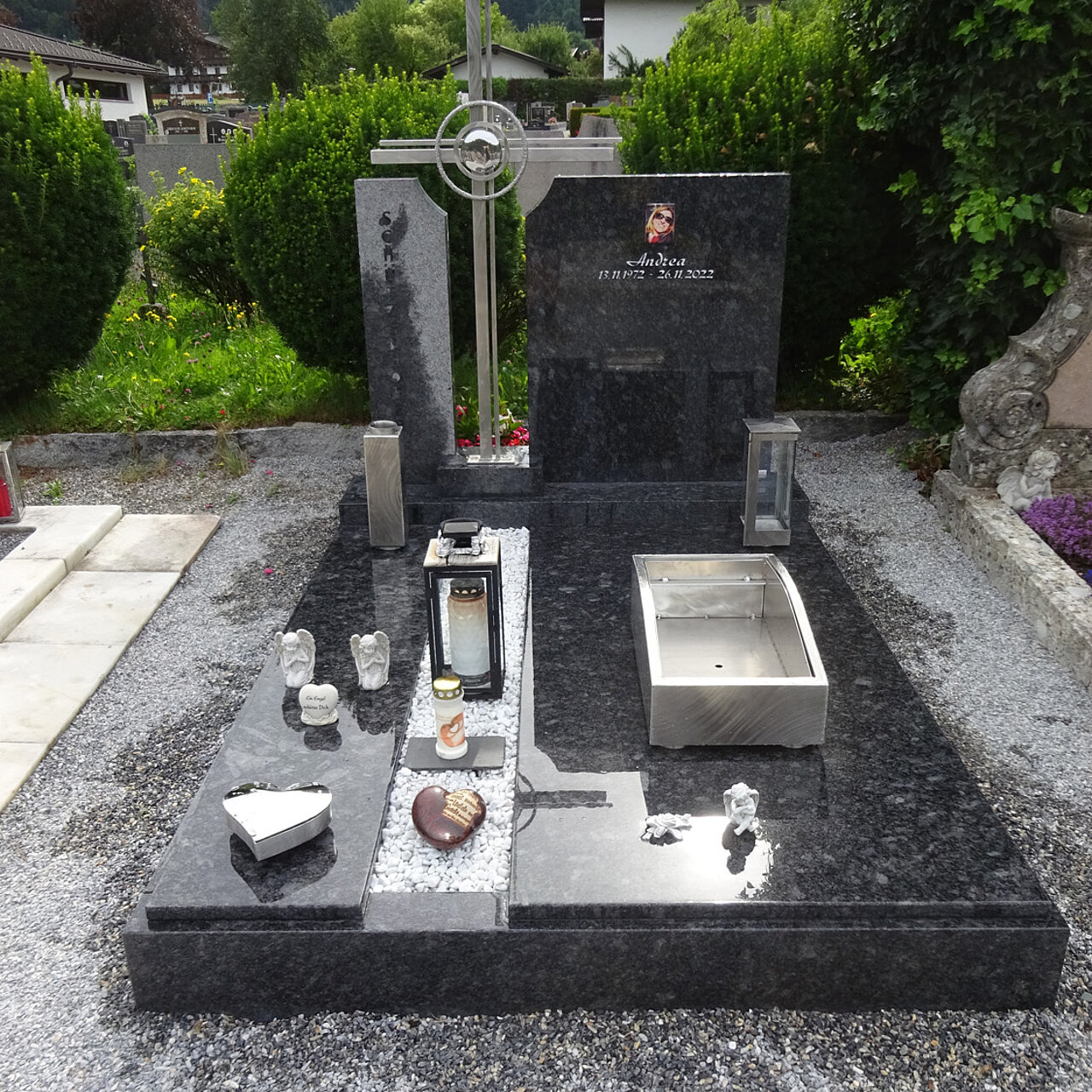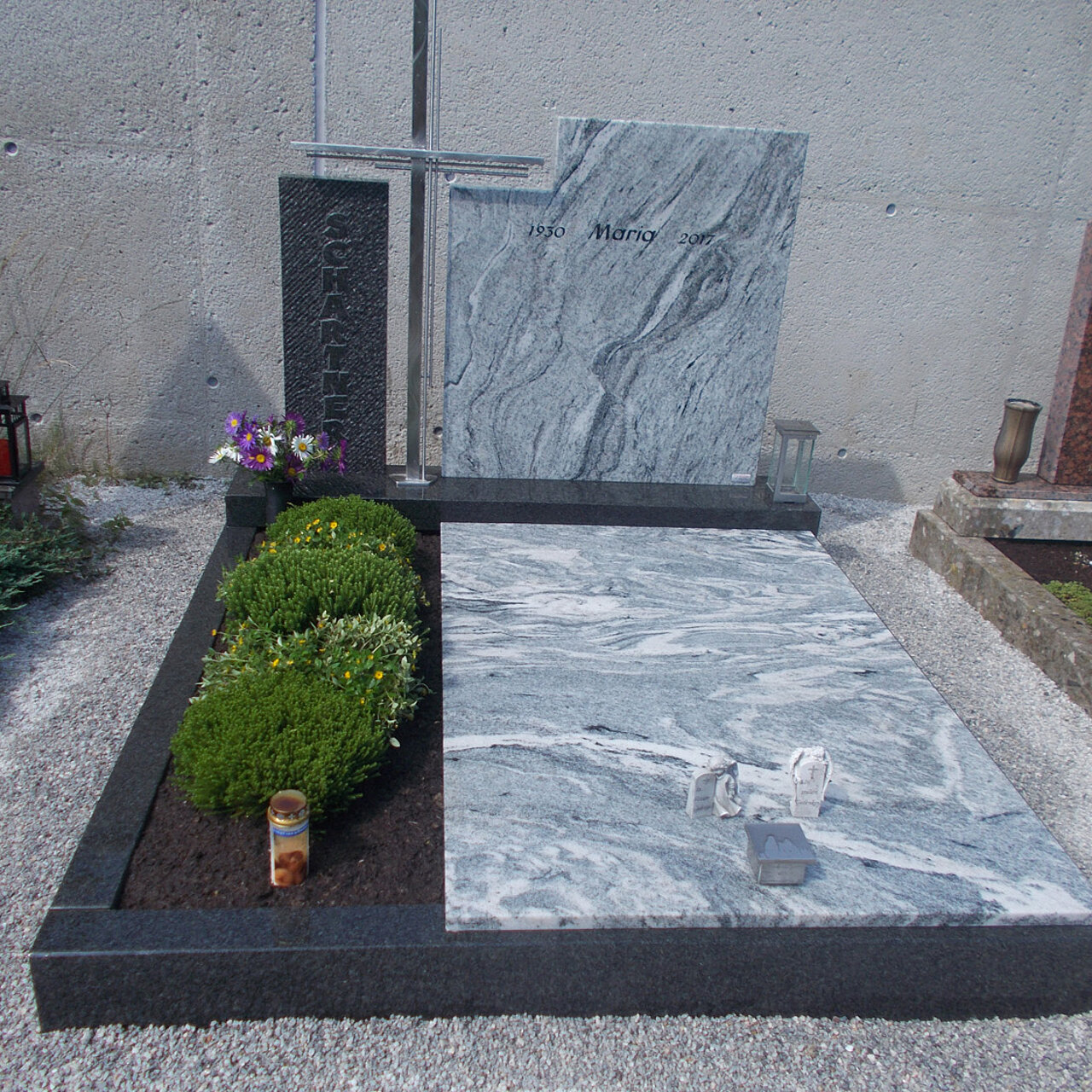 Gerade bei großen Grabflächen mit einer Breite von 1,80 bis 2,00 m wird die Bodengestaltung besonders wichtig. Der Kreativität sind hier kaum Grenzen gesetzt. Ob mehrteilig oder einteilig, mit Kreuzen oder Figuren bestückt, doppelt breite Grabanlagen bieten genügend Platz für alle Wünsche.