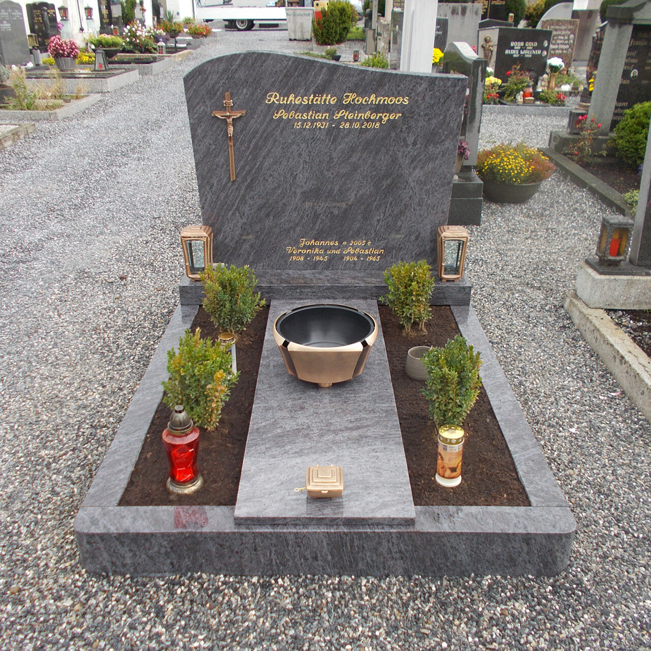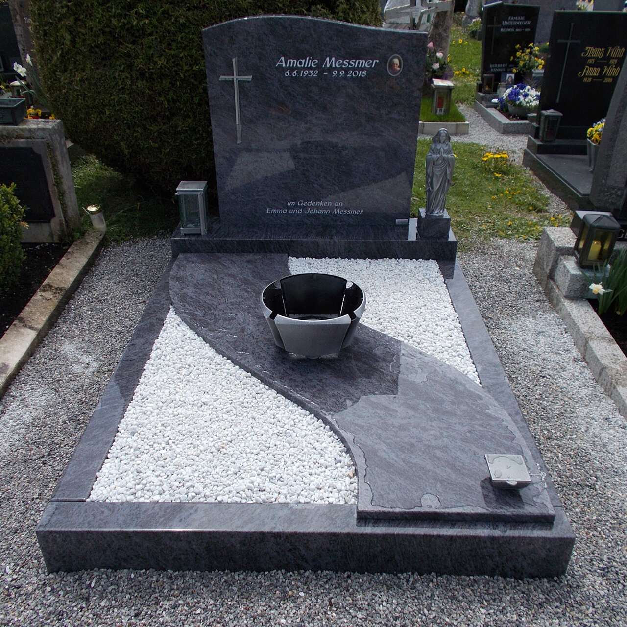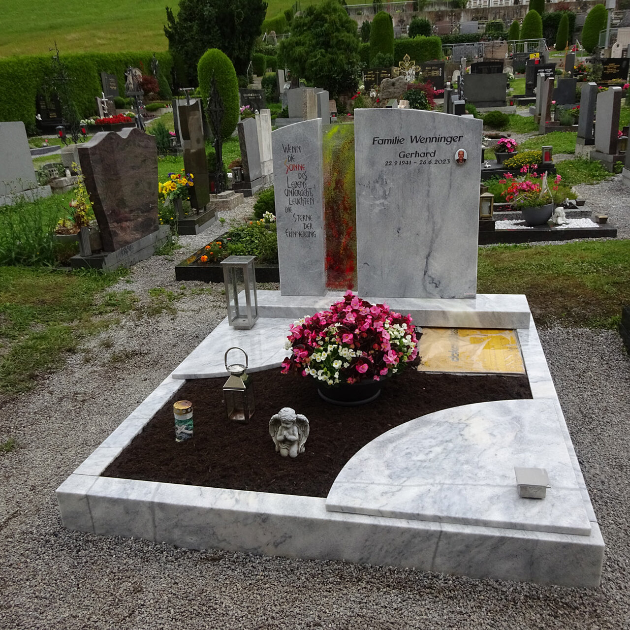 Gerade bei großen Grabflächen mit einer Breite von 1,80 bis 2,00 m wird die Bodengestaltung besonders wichtig. Der Kreativität sind hier kaum Grenzen gesetzt. Ob mehrteilig oder einteilig, mit Kreuzen oder Figuren bestückt, doppelt breite Grabanlagen bieten genügend Platz für alle Wünsche.