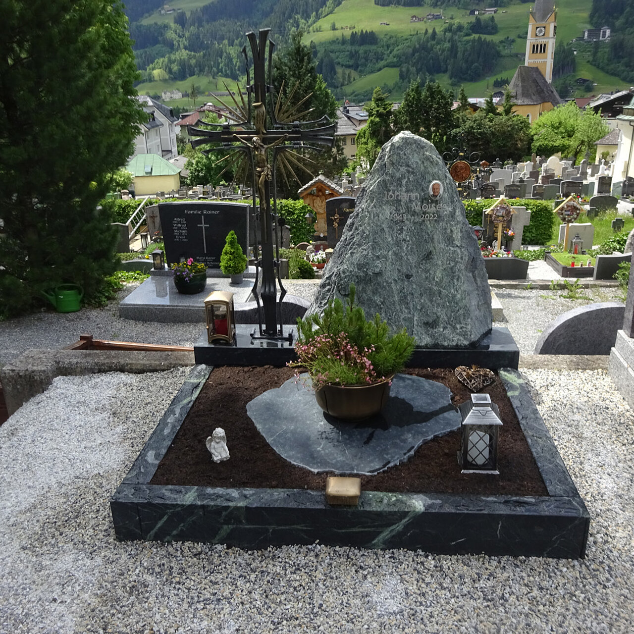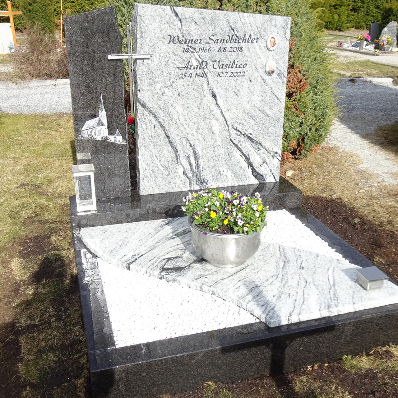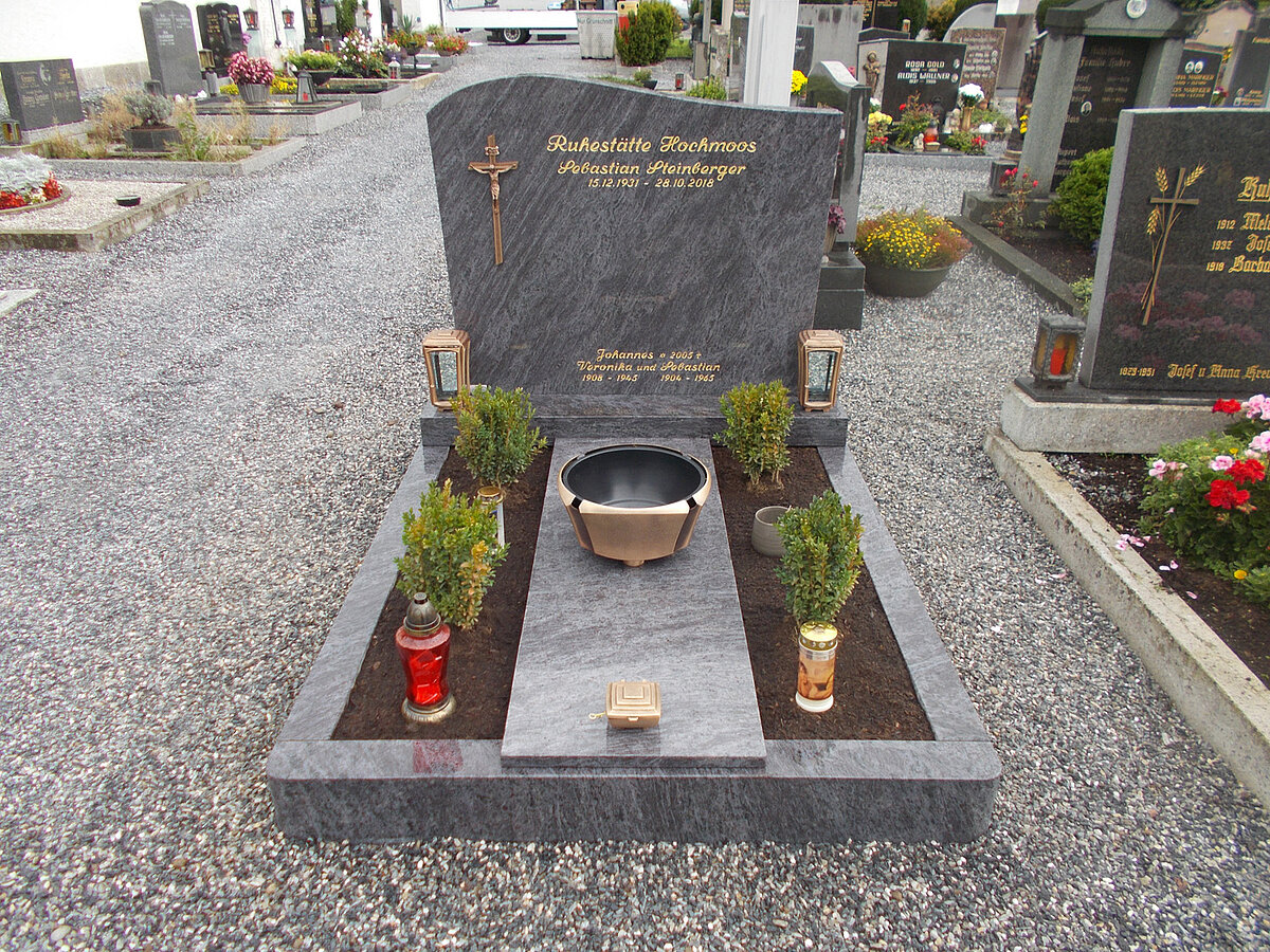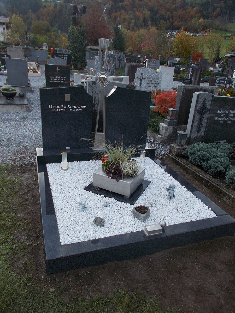 Gerade bei großen Grabflächen mit einer Breite von 1,80 bis 2,00 m wird die Bodengestaltung besonders wichtig. Der Kreativität sind hier kaum Grenzen gesetzt. Ob mehrteilig oder einteilig, mit Kreuzen oder Figuren bestückt, doppelt breite Grabanlagen bieten genügend Platz für alle Wünsche.